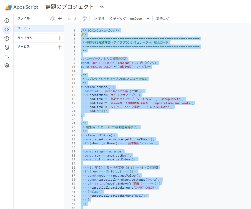「ライフプランアプリ」>「1. 初期セットアップ(シート作成)」をクリックします。